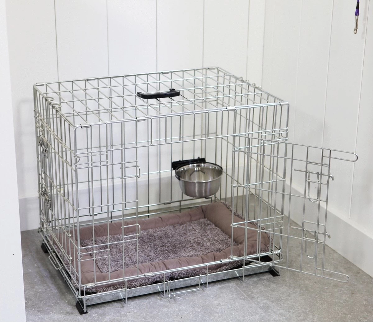 De Adori Bench 2-Deurs De Luxe Verzinkt is een praktische en comfortabele hondenbench. De bench is gemakkelijk in te klappen en weer op te zetten, zodat je deze makkelijk kunt meenemen en verplaatsen. Deze bench is uitermate geschikt voor intensief gebruik en heeft een verzinkte lade die je makkelijk uit de bench kunt halen om schoon te maken. Verder beschermt de dubbel verzinkte toplaag de bench tegen roestvorming. Met het kunststofhandvat is de bench makkelijk te verplaatsen. De Bench 2-Deurs Verzinkt is beschikbaar in vijf verschillende maten: