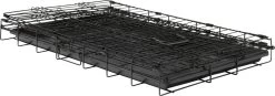 De Adori Bench 2-Deurs Zwart is een praktische en comfortabele hondenbench. De bench is gemakkelijk in te klappen en weer op te zetten, zodat je deze makkelijk kunt meenemen en verplaatsen. De bodem van de bench is een losse kunststof lade die je makkelijk uit de bench kunt halen om schoon te maken. Verder heeft de hondenbench afgeronde hoeken zodat je hond zich er niet aan verwondt. De poedercoated toplaag voorkomt roestvorming en het kunststofhandvat maakt het verplaatsen van de bench gemakkelijk. De Bench 2-Deurs is beschikbaar in vijf verschillende maten: