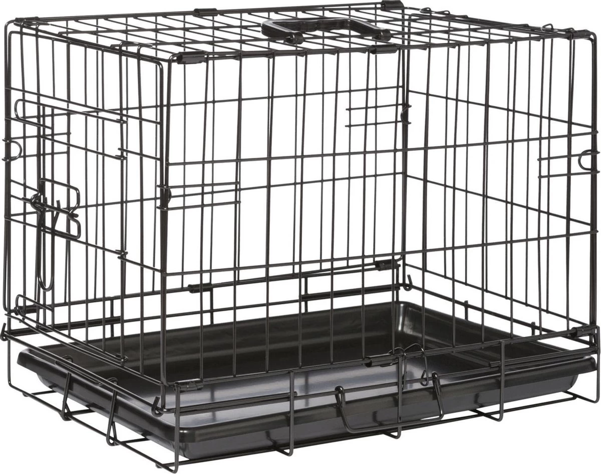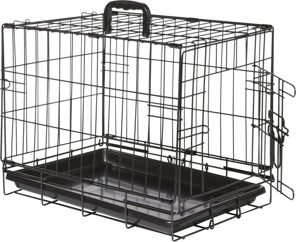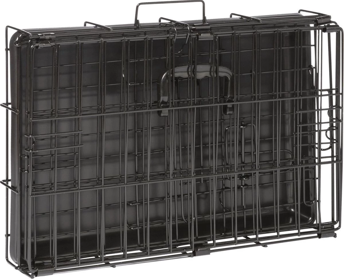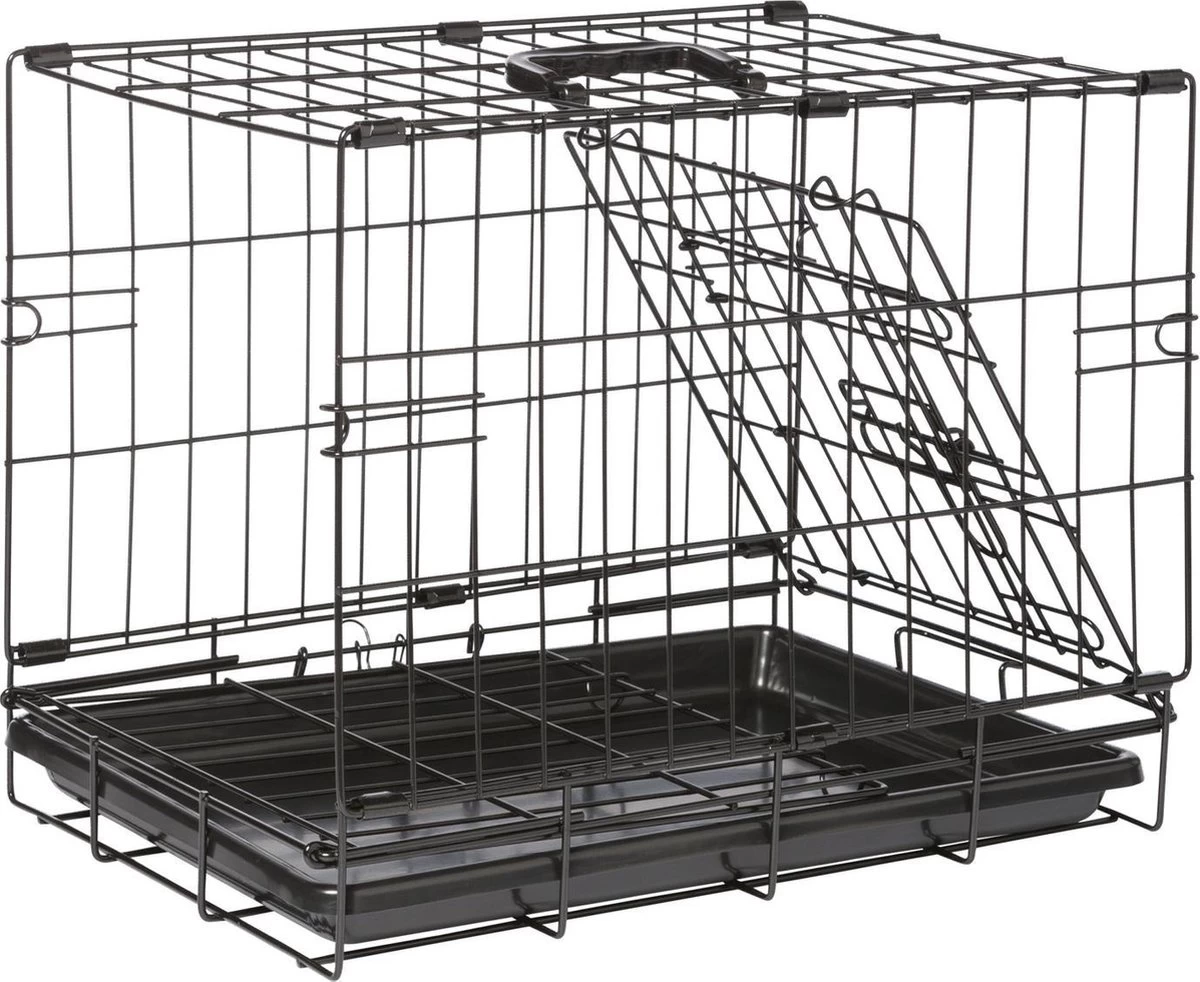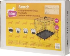 De Adori Bench 2-Deurs Zwart is een praktische en comfortabele hondenbench. De bench is gemakkelijk in te klappen en weer op te zetten, zodat je deze makkelijk kunt meenemen en verplaatsen. De bodem van de bench is een losse kunststof lade die je makkelijk uit de bench kunt halen om schoon te maken. Verder heeft de hondenbench afgeronde hoeken zodat je hond zich er niet aan verwondt. De poedercoated toplaag voorkomt roestvorming en het kunststofhandvat maakt het verplaatsen van de bench gemakkelijk. De Bench 2-Deurs is beschikbaar in vijf verschillende maten: