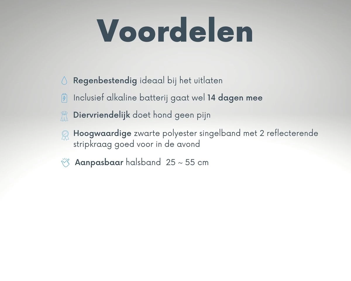 De halsband tegen blaffen is gemaakt van kwalitatieve en veilige materialen. Leer het blaffen op een diervriendelijke manier af terwijl het product ook nog eens is gemaakt van betrouwbare en duurzame materialen. De anti blafband is comfortabel, antiallergisch en weegt weinig waardoor de hond geen ongemak ervaart.