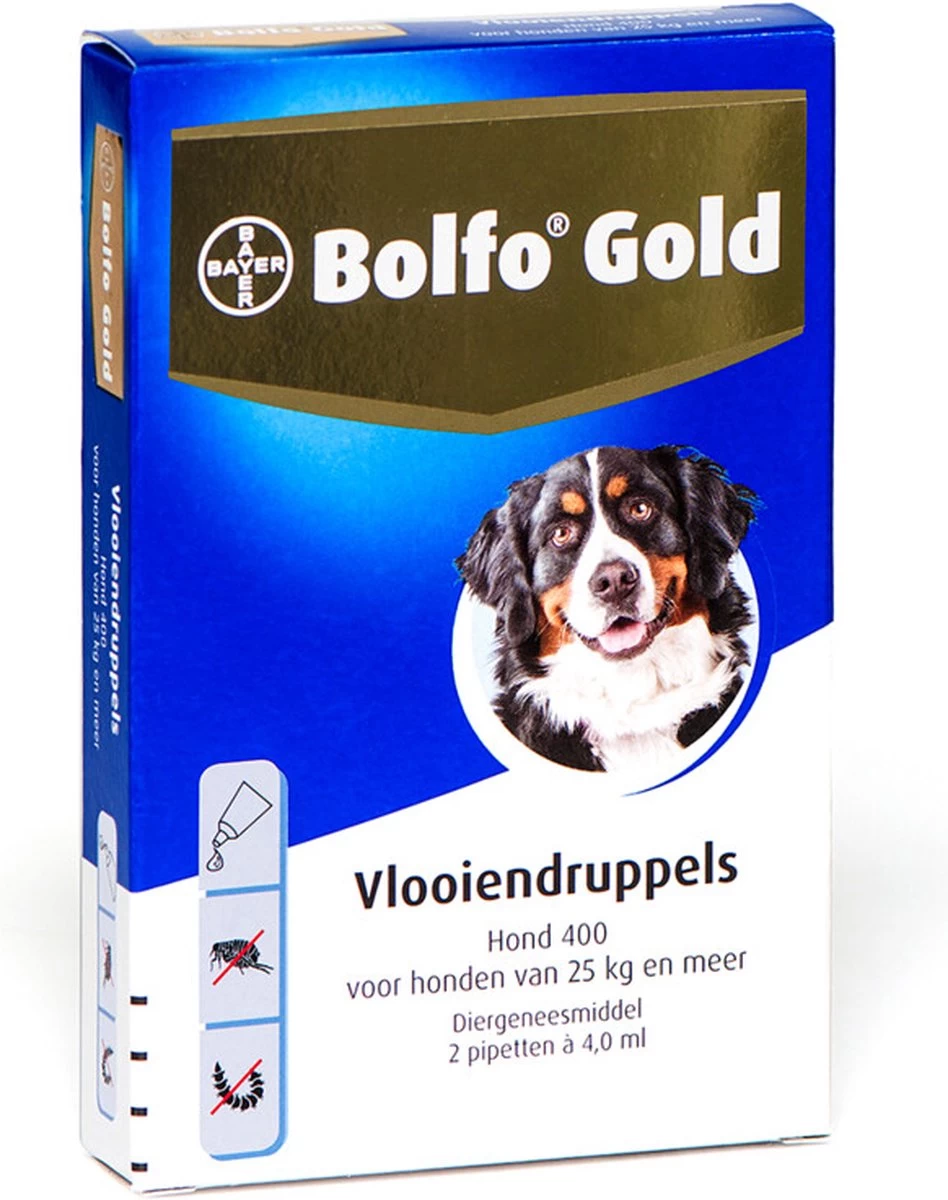 Bolfo Gold biedt een snelle werking tegen vlooien en vlooienlarven. De snelheid van werken is van belang. Zo heeft bijvoorbeeld het huisdier minder last van de aanwezige vlooien en krijgt u de vlooienplaag sneller onder controle. Daarnaast is deze snelheid belangrijk zodat vlooien geen eitjes kunnen leggen, ze niet bijten waardoor een vlooienallergie kan worden tegen gegaan, nieuwe vlooien vanuit de omgeving snel worden gedood. Vlooien zijn ook de tussengastheer van de vlo-lintworm (Dipylidium caninum). Door het snel doden van de vlo, kun je de overdracht van deze worm ook voorkomen. Bolfo Gold® heeft een snelle werking tegen vlooien en vlooienlarven. Veel vlooien worden al gedood voordat ze bijten en bloed zuigen. De toediening is gemakkelijk: u druppelt de inhoud van de pipet tussen de haren van uw hond op de intacte huid.Snelle werking tegen vlooien (