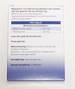Breedspectrum ontwormingsmiddel voor honden vanaf 5kg op basis van Milbemycine oxime en Praziquantel.