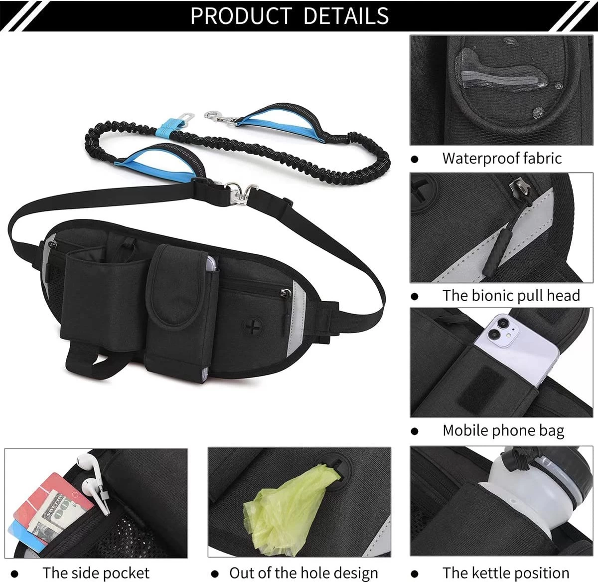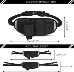 【Multifunctionele Heuptas】Ontworpen met een brede rugsteunriem, ademende netstof, helpt trekspanning te verminderen en beschermt uw taille effectief. U kunt er smartphones, flessen, sleutels, geld, vuilniszakken en andere benodigdheden in opbergen. De riem is verstelbaar van 90cm/35.43″ tot 130cm/51.18″ voor uw comfort. Deze heuptas kan worden gebruikt met uw huisdier of als sport heuptas alleen.