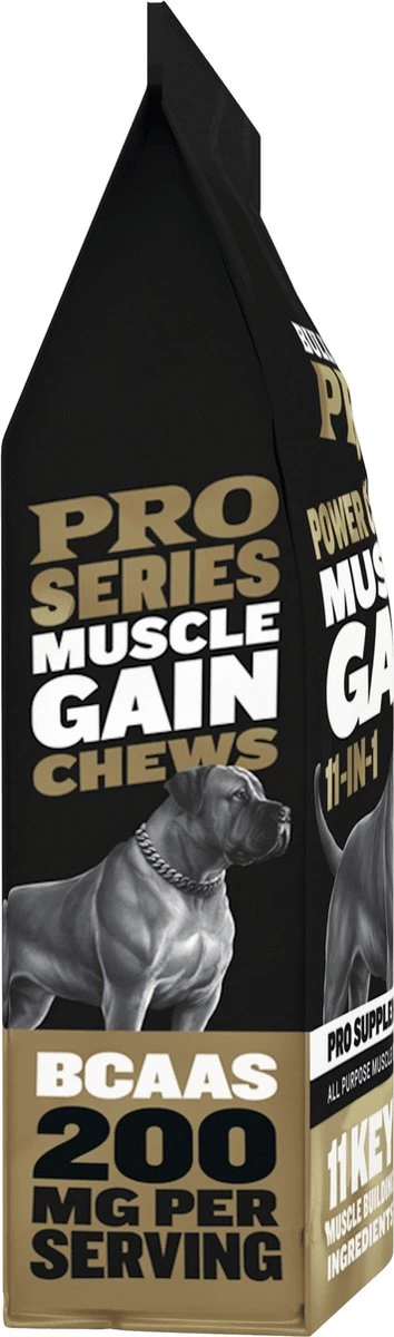 Bully Max™ PRO Series Power Chews for Muscle Gain 11-in-1 Supplement is ontworpen voor actieve rassen en voor ondergewicht of ondervoede honden die hulp nodig hebben om een gezond gewicht te bereiken. Het is veilig en effectief voor alle rassen ouder dan 12 weken.