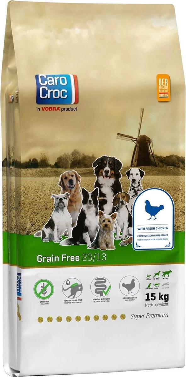 CaroCroc Graanvrije hondenbrok met 51% vleesCaroCroc Graanvrijis een volledig hondenvoer voor volwassen honden vanalle rassen en biedt een perfecte ondersteuning bij voedselallergien. Ookdraagt het bij aan het voorkomen van voedselovergevoeligheid. Detoegevoegde zalmolie ondersteunt een gezonde huid en vacht en de extrabietenpulp draagt bij aan gezonde darmen.