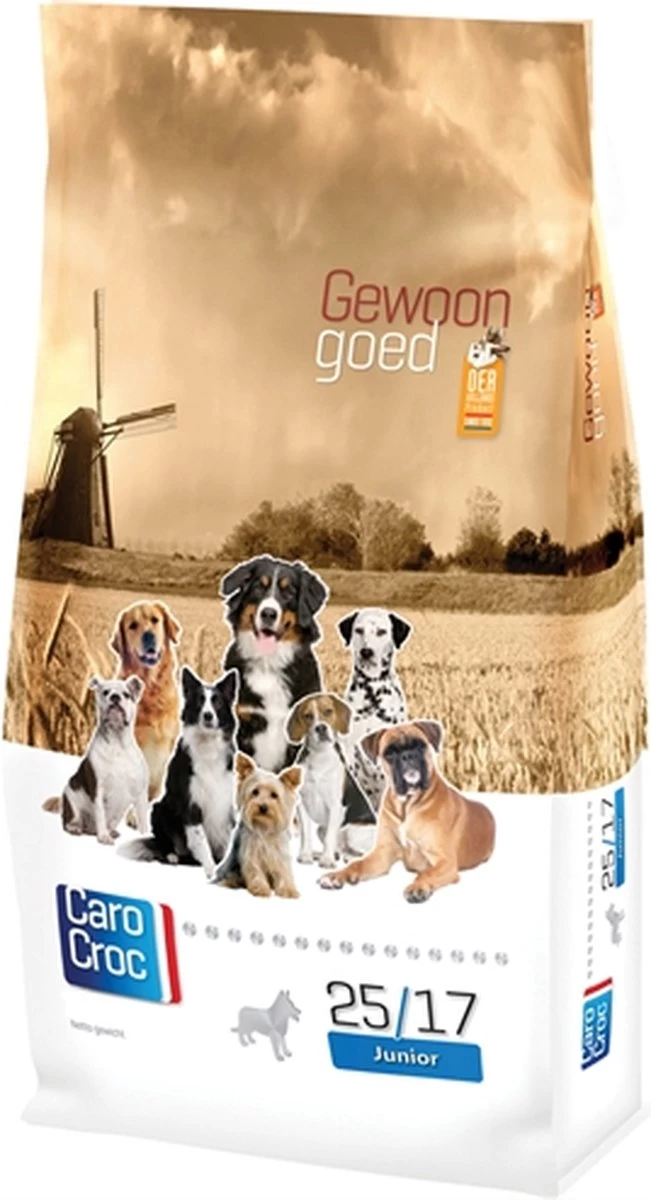 Pups van grote rassen mogen niet te snel groeien. Dit vergroot het risico op gewrichtsproblemen. CaroCroc Junior bevat een optimaal energiegehalte, eiwitgehalte en calciumgehalte voor een gelijkmatige groei.