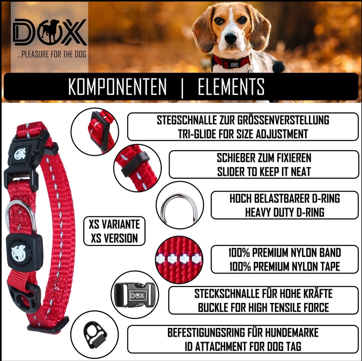 DDOXX Hondenhalsband Nylon, Reflecterend, Verstelbaar | Voor Kleine & Grote Honden | Halsband Hond Kat Puppy | Hondenhalsband Groot Breed | Kattenhalsband Puppy Halsband Klein | Rood, XS