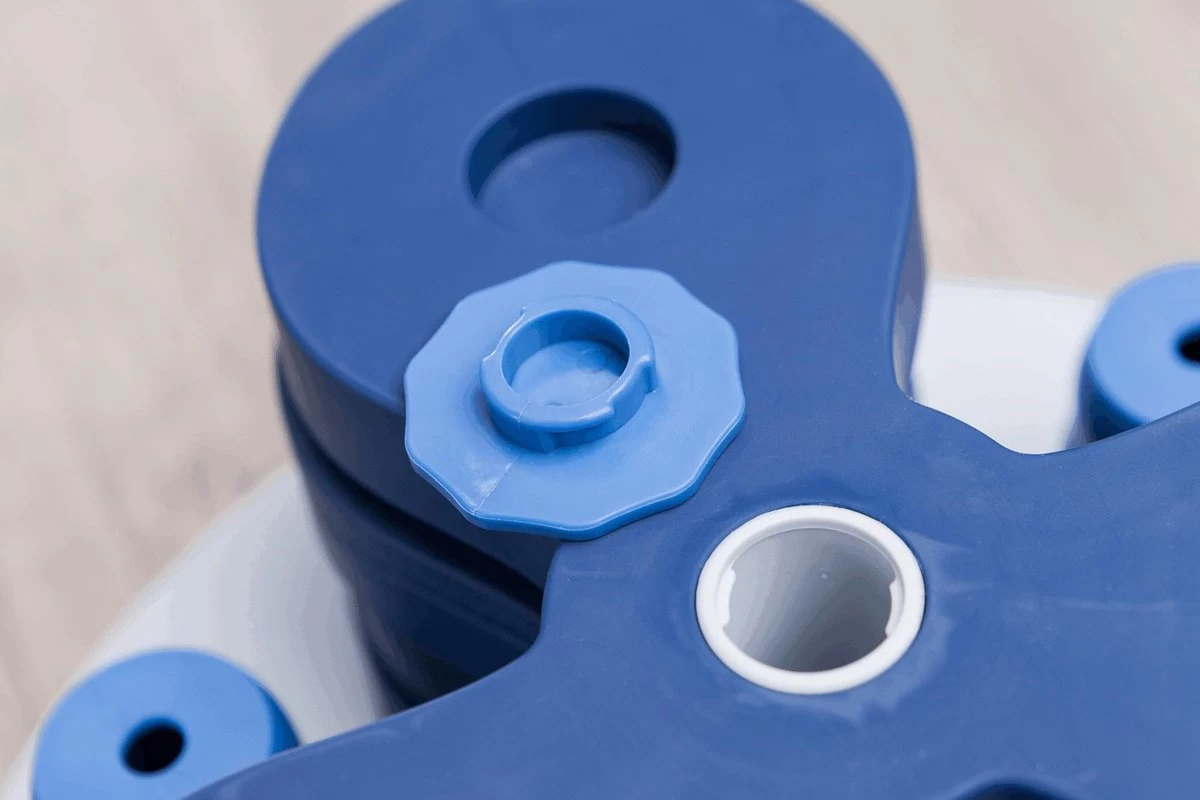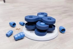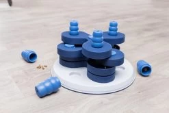 Het Trixie Dog Activity Intelligentiespel Flower Tower van 30 x 30 x 13 cm is een uitdagend intelligentiespel voor de gevorderde hond. Het spel is voorzien van kommetjes en schuifdeksels op verschillende niveaus, alsook zes kegels die omgeduwd kunnen worden om er eten onder te vinden. Door verschillende openingstechnieken komt de hond bij zijn beloning. Dit biedt mentale uitdaging en gaat verveling tegen. Door de rubberen ring is het speelgoed slipvast en kan jouw hond ongestoord op zoek naar zijn beloning! Het spel komt bovendien met een handleiding met tips en handigheidjes voor een optimale training.