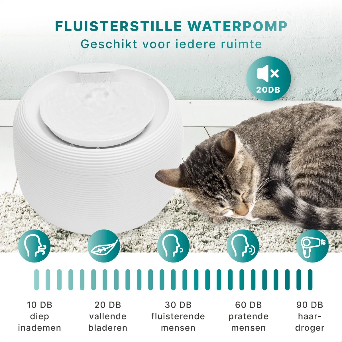 De drinkfontein is uitgerust met een zeer geruisloze waterpomp, met zijn