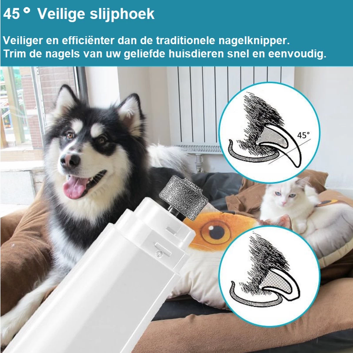 Natuurlijk wil je de allerbeste verzorging voor je maatje, te lange nagels bij huisdieren kunnen zorgen voor veel pijn en uiteindelijk zelfs gewrichtsproblemen, dit wil je voorkomen! Met de Pet Nail Grinder zijn scherpe en te lange nagels weer kort en glad binnen enkele seconden! De vijl is uitgerust met een diamanten vijlkop met beschermkap en is geschikt voor zowel kleine als grote dieren. Tevens is de vijl draadloos en uitgerust met een low-noise functie, dit maakt het erg fijn en makkelijk om mee te werken.