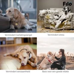 Met deze schattige en zachte Filo knuffel met hartslag en warmtepads (4x) zal jouw hond zich snel veilig en kalm voelen. Het kleine hartvormige apparaatje produceert een levensechte regelmatige en kalme hartslag, waardoor de warmte en veilige omgeving van een moeder of ander familielid wordt nagebootst. Met het bijgeleverde warmtepads kan je warmte toevoegen voor extra comfort. De knuffel is gemaakt van zachte pluche materialen en biedt hulp aan alle honden die angstig of gestrest zijn, verlatingsangst hebben, slecht kunnen slapen of gewoon behoefte aan gezelschap hebben.