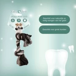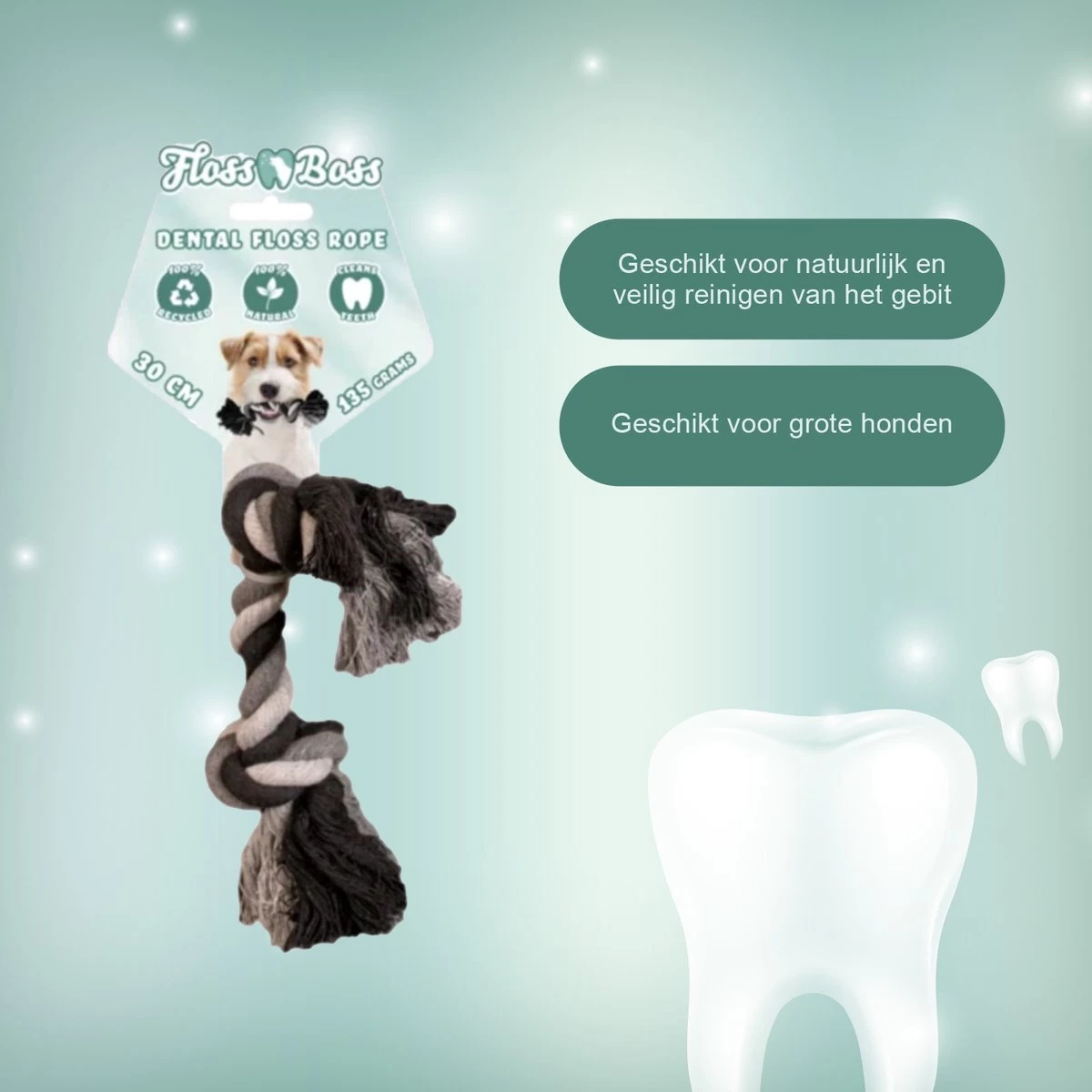 Het zeer stevige katoen reinigt het gebit van uw hond op een natuurlijke manier. Door te spelen met het flostouw komt uw hond aan zijn kauwbehoefte en wordt het gebit op ieder gebied en grondig gereinigd.