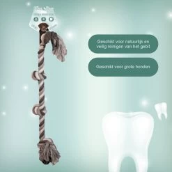 Het zeer stevige katoen reinigt het gebit van uw hond op een natuurlijke manier. Door te spelen met het flostouw komt uw hond aan zijn kauwbehoefte en wordt het gebit op ieder gebied en grondig gereinigd.