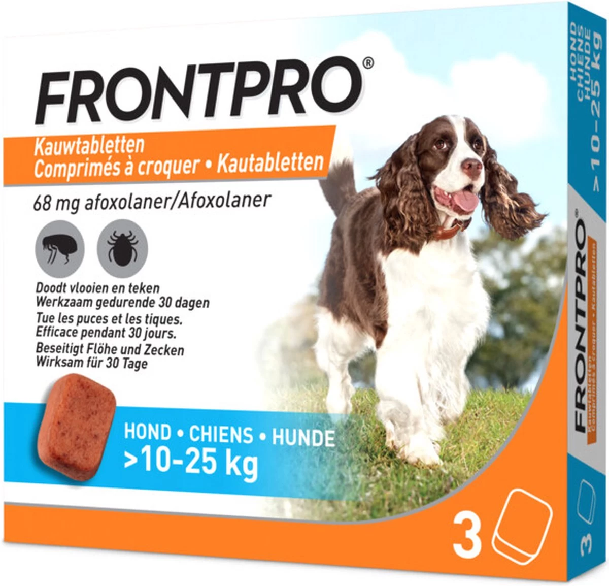 Makkelijk te geven lekkere chew. Werkt snel van binnenuit. Dood effectief vlooien en teken gedurende volledige 30 dagen. Vlooien worden gedood voordat ze eieren kunnen leggen.