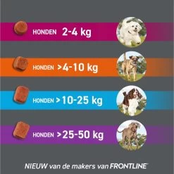 Makkelijk te geven lekkere chew. Werkt snel van binnenuit. Dood effectief vlooien en teken gedurende volledige 30 dagen. Vlooien worden gedood voordat ze eieren kunnen leggen.