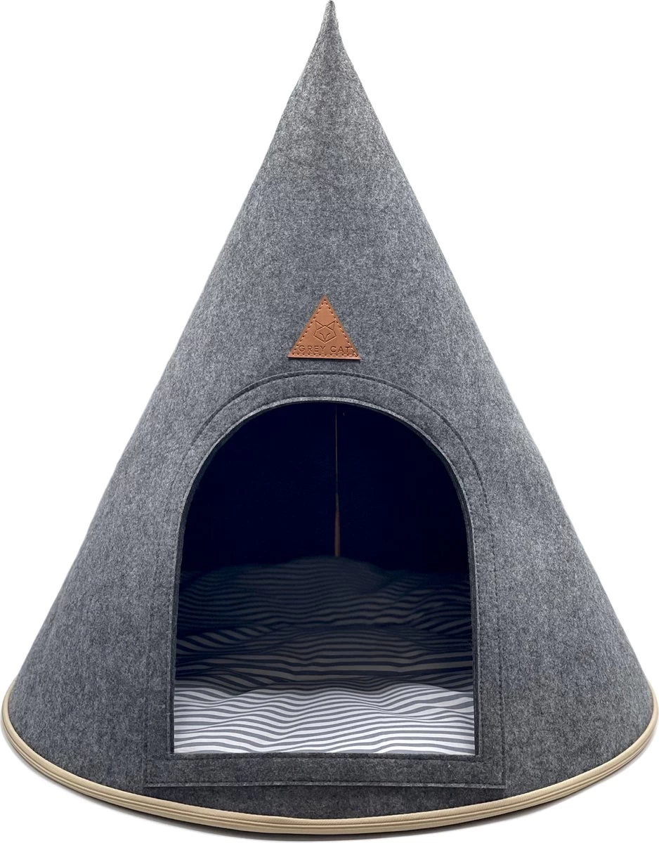 Het kegelvormige huis heeft een ovale opening en een extra comfortabel uitneembaar kussen.