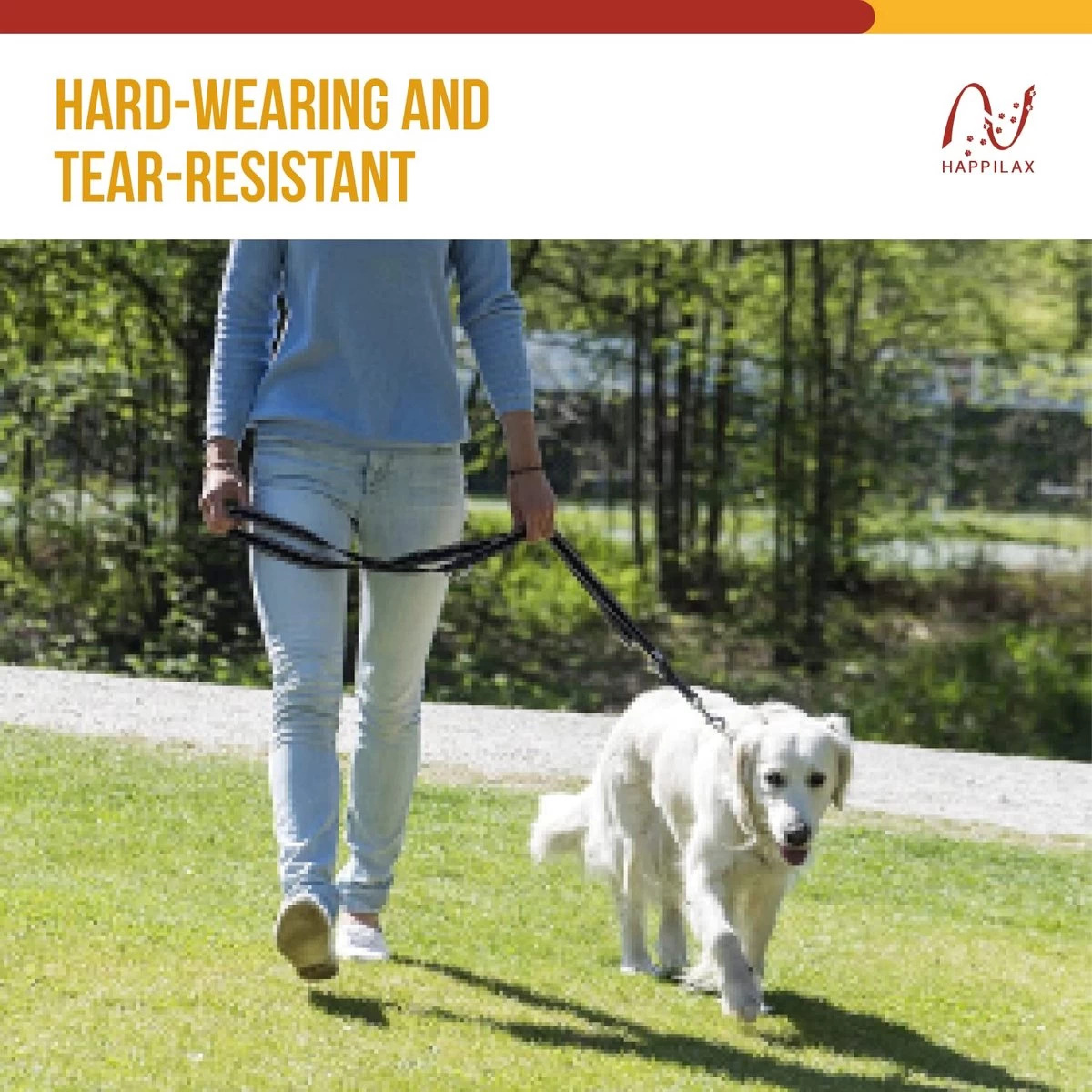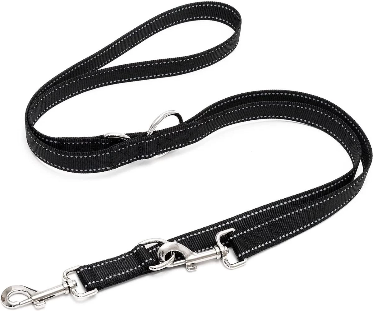 Happilax Dog Leash 2m Adjustable – Black/Reflective – 3-Step Adjustable Leash – Double Leash, Tug Leash – Geschikt Als Hondenriem Voor Grote Honden Of Als Sleepriem Voor Kleine Honden.