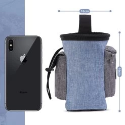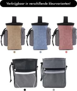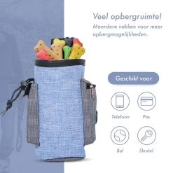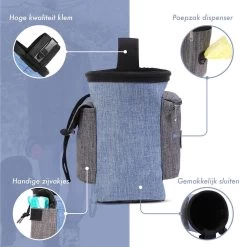 Je kan hier gemakkelijk hondensnoepjes in bewaren, daarnaast bevat dit tasje ook een dispenser voor poep zakjes zodat je deze ook altijd bij de hand hebt.