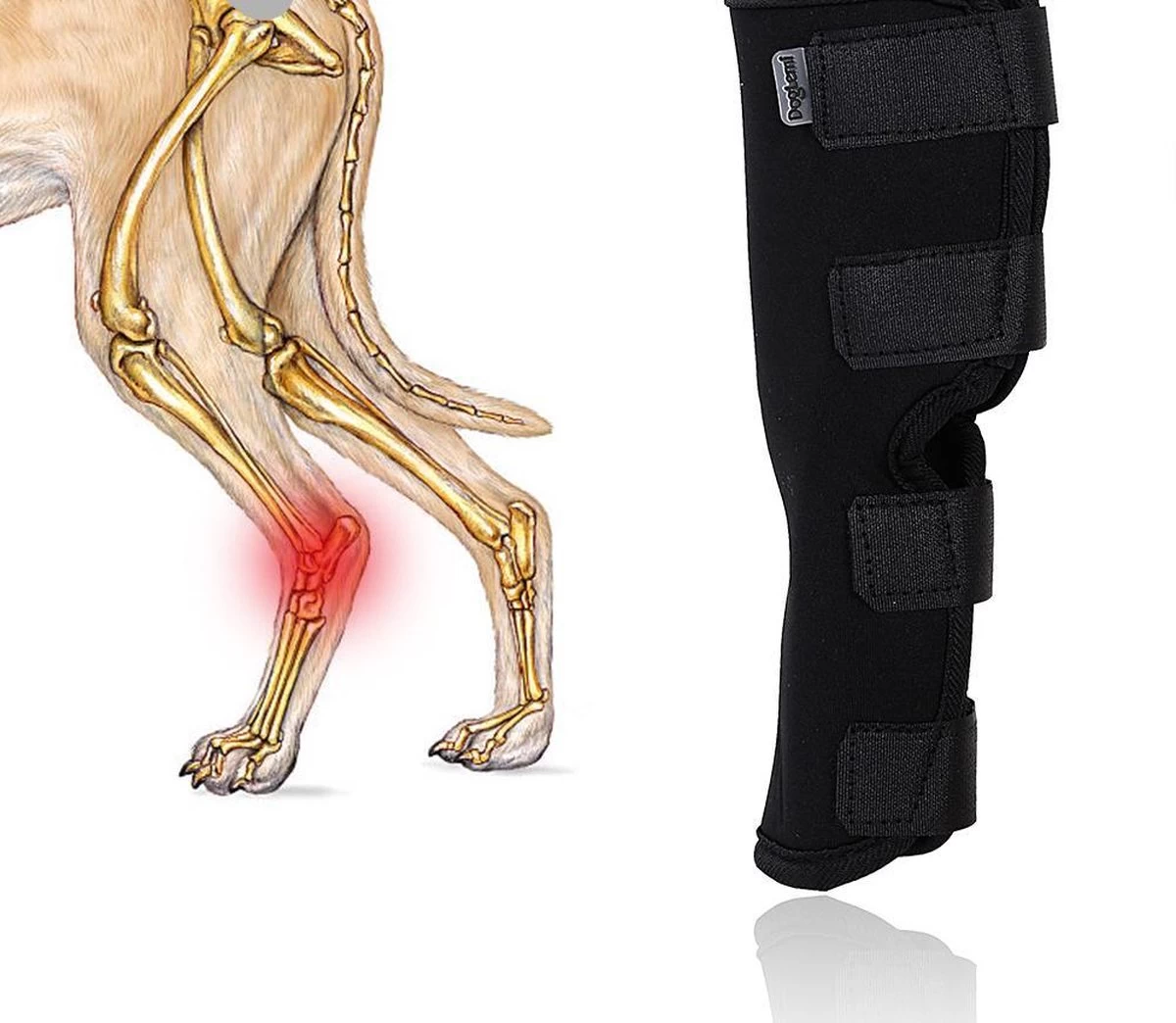 Deze brace is speciaal ontwikkeld als volledige bescherming voor zowel de voor- als achterpoot van de hond.