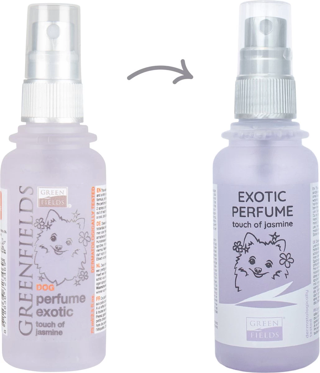 Verwen je hond met de zoete geur van de hondenparfum Exotic. Deze geur herinnert ons aan de zomer, met exotische en kruidige ingrediënten zoals musk, sandelhout en een vleugje jasmijn dat een tropische geur heeft.