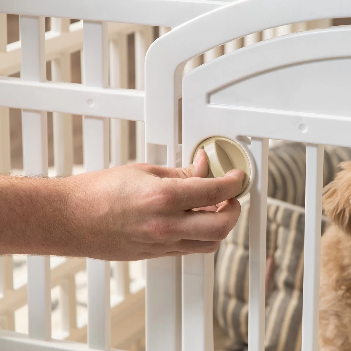 De Pet Circle is een praktische oplossing om een speel- en leerruimte te creëren voor uw hond. Door het lichte gewicht is de Pet Circle is eenvoudig in elkaar te zetten en te verplaatsen. Deze verplaatsbare afzetting is uitgerust met een deur met twee sloten en faciliteert genoeg ruimte om als slaapplek te dienen. De Pet Circle CI-604E is beschikbaar in de kleuren zwart en wit/beige.