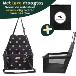 De Blaffende Kat Opvouwbare Autostoel hond – Hondenmand auto – Autobench voor hond – Hondenstoel auto – Zwart wit