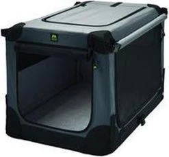 De reisbench heeft 3 openingen- aan de voorkant, bovenkant en zijkant. De opening aan de zijkant zorgt ervoor dat je de kennel ook in een auto kunt plaatsen met een kleinere kofferbak. De bandjes zijn speciaal voor veiligheidsgordels ontwikkeld en maken het reizen in de auto een stuk veiliger. De kennel kan natuurlijk ook in de kofferbak geplaatst worden