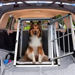 De rit naar de dierenarts of op vakantie wordt kinderspel voor jou en je trouwe viervoeter. Met de aluminium hondentransportbox L vervoer je kleine tot middelgrote honden comfortabel en veilig. Plaats de doos in de kofferbak of maak hem vast op de achterbank van uw auto. De dieren zullen zich dankzij de goede ventilatie meteen thuis voelen. Bovendien kunnen u en uw hond elkaar van alle kanten duidelijk zien, zodat u altijd zeker weet hoe uw huisdier zich voelt.