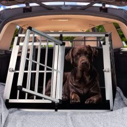 De rit naar de dierenarts of op vakantie wordt kinderspel voor jou en je trouwe viervoeter – met de aluminium hondentransportbox XL vervoer je grote honden comfortabel en veilig. Plaats de doos in de kofferbak of maak hem vast op de achterbank van uw auto. De kleine pelsneuzen zullen zich dankzij de goede ventilatie meteen thuis voelen. Bovendien kunnen u en uw hond elkaar van alle kanten duidelijk zien, zodat u altijd zeker weet hoe uw huisdier zich voelt.