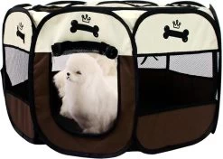 Met deze opvouwbare honden bench hebben jouw honden een veilig en leuk eigen plekje. Ideaal als slaapvertrek, om in te spelen en voor mee op reis. Geschikt voor puppy’s, kleine honden maar ook voor andere kleine dieren zoals konijnen of cavia’s.