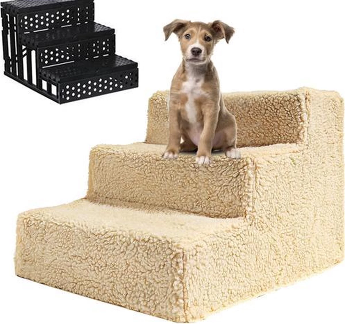 ✔ Deze hondentrap is verkrijgbaar in beige en zwart. Deze handige hondentrap is het ideale hulpstuk voor kleine pups of juist oudere honden welke niet meer kunnen of mogen springen. Plaats de trap eenvoudig voor elk willekeurig plekje zoals de bank of het bed en laat jouw hond weer zelf op de bank komen. Deze hondentrap is gemaakt van kunststof waardoor hij eenvoudig schoon te maken is. Na gebruik klap je de trap eenvoudig weer in om hem op te bergen. Het trapje heeft drie tredes en past hierdoor aan vrijwel elk meubelstuk. Ook ideaal voor honden welke door gewrichtsproblemen minder belast mogen worden, springen is niet meer nodig met deze hondentrap.