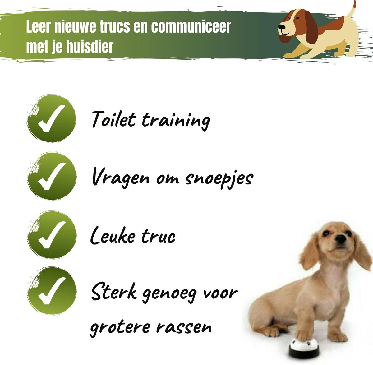 Honden vinden het erg leuk om met de baas samen te werken! Daarbij kunnen honden vele leuke maar ook handige trucjes leren. Deze leuke hondenbel is een ideaal hulpmiddel om aan de slag te gaan met een hele leuke oefening die Touch & Targeting wordt genoemd. Door het gebruik van deze oefening kun je de aandacht van je hond afleiden zowel thuis als tijdens het wandelen.Een leuke oefening die garant staat voor een leuke samenwerking en veel plezier!