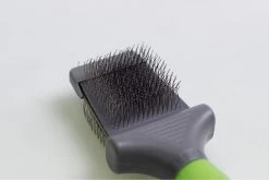 Het verwijderen van losse haren, vuil en klitten is een fluitje van een cent met de Premium Slickerborstel van Moser. De borstel dient voorzichtig gebruikt te worden. Leg een hand onder de te borstelen vacht en kam over je hand heen. Borstel de vacht laag voor laag zodat je geen haren overslaat. Let goed op bij honden met een dunne vacht, doe voorzichtig om te voorkomen dat je je hond pijn doet tijdens het kammen.