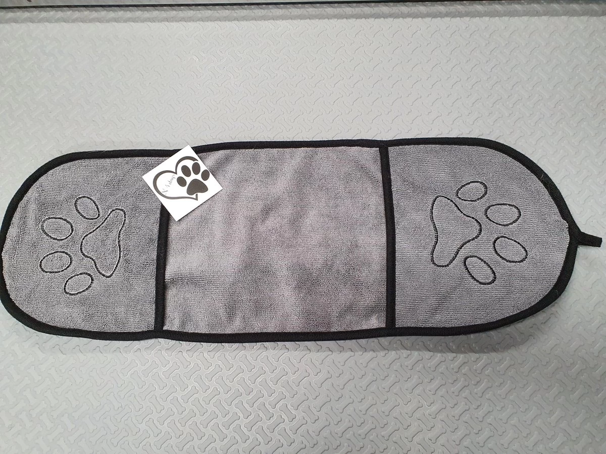 N4dogs – Hondenhanddoek – Honden Handdoek – Microvezel Handdoek – Handdoek Hond – Droogdoek Hond – Dierendeken – Sterk Absorberend – Handdoek Met Zakken – Grijs – 66 X 23 Cm