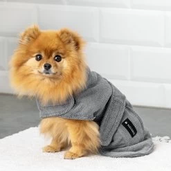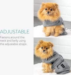 - DETAILS: De hondenjas is grijs en gemaakt van microvezel. Dit materiaal is uitermate zacht en absorbeert het water en vocht snel. De droogjas komt in maat S en is geschikt voor honden met een nekomvang tussen de 35-41 cm.