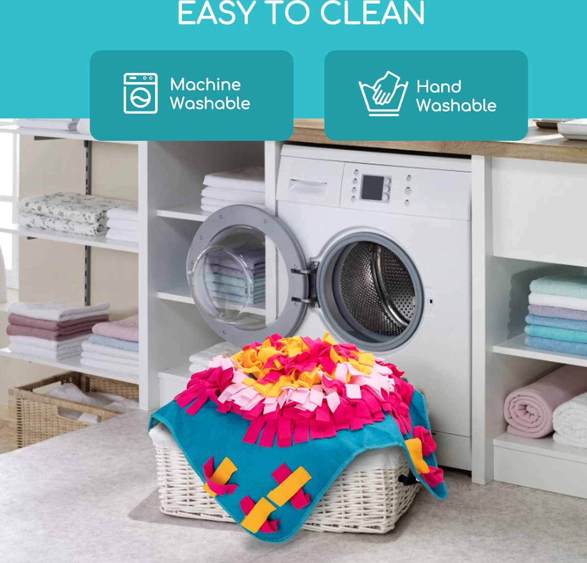 GEMAKKELIJK TE REINIGEN: De onderkant van deze snuffelmat is gemaakt van Oxford-doek, dat vuilafstotend en antislip is. Het oppervlak is gemaakt van zacht viltmateriaal en de schuilplaats is gemaakt van milieuvriendelijke polar fleece stof. U kunt in de machine wassen of met de hand wassen. Deze geurmat van alle rassen is duurzaam en vormt een mooie aanvulling op het trainingsspeelgoed van uw hond.