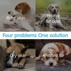 Veganistische hondenshampoo: met natuurlijk camelia-extract voor het gemakkelijk ontklitten en ontwarren van beschadigde vachten na het wassen. Hydrateert de huid van uw huisdier en geeft meer glans aan de vacht van langharige honden.