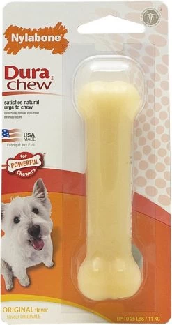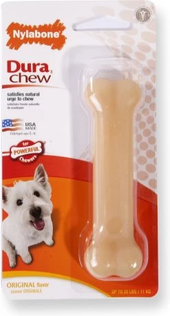 Het Nylabone kauwbot is vervaardigd uit duurzaam hoogwaardig nylon. Nylabones zijn goed gekeurd door dierenartsen om aan de kauwdrift van uw hond te voldoen.