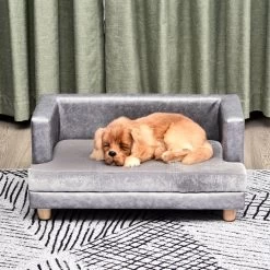 PawHut Hondenbank Huisdierbank Hondenbed Hondenmat Woonkamer PU-leer Kort Pluche Grijs D04-135