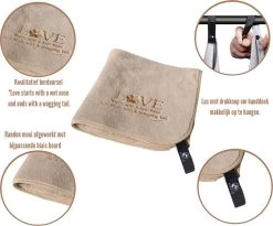 De honden handdoek is smaakvol verpakt in een toilettasje, zodat u deze makkelijk overal mee naartoe kan nemen. Bovendien is deze handdoek met zijn borduursel ‘Love starts with a wet nose and ends with a wagging tail’, een lust voor het oog. Met zijn handige formaat (100 cm x 50 cm) is deze handdoek voor elk type hond geschikt.
