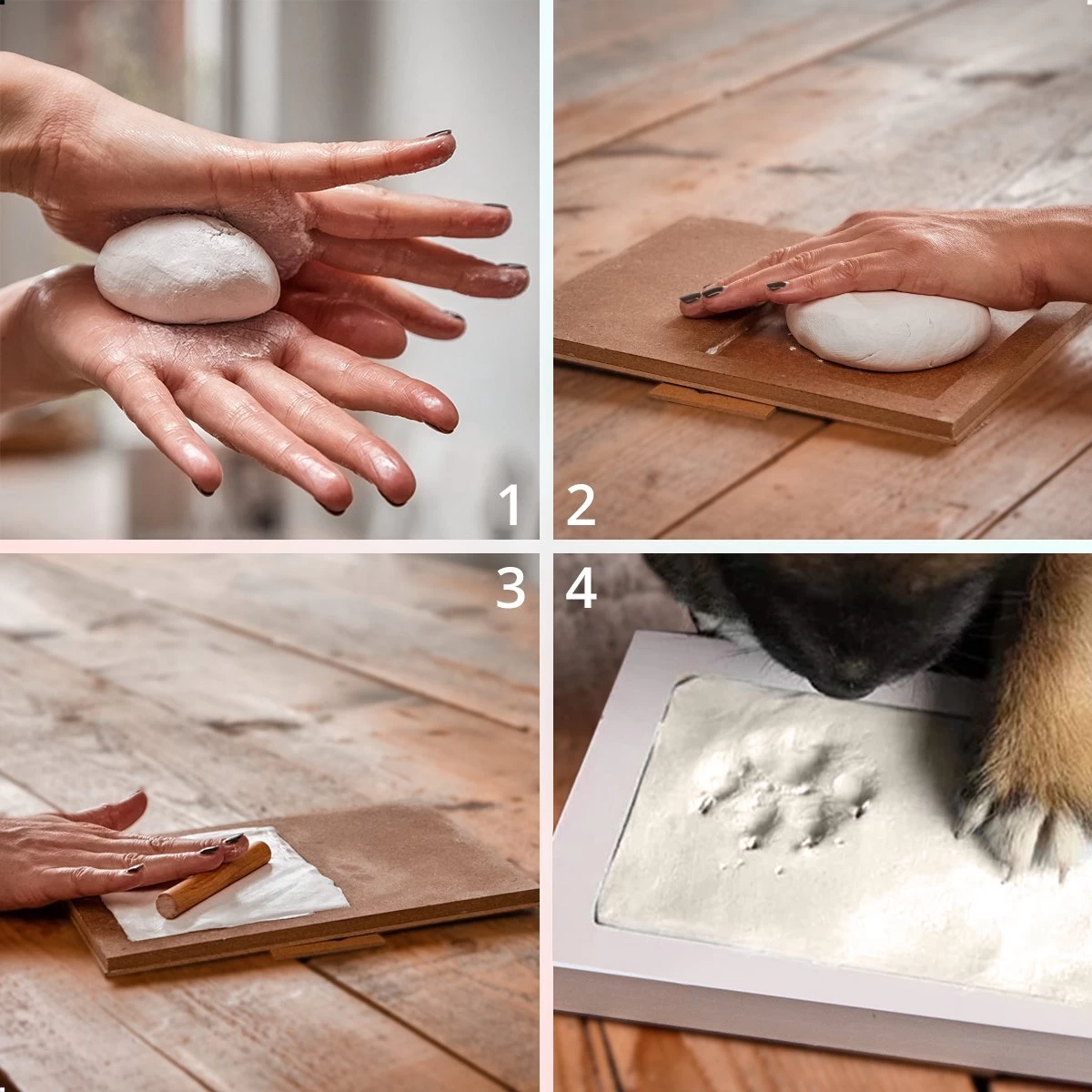 Deze fotolijst is een must have voor alle dierenliefhebbers. Leg een voetafdruk en handafdruk, van klei, voor altijd vast. Voeg er nog twee persoonlijke foto’s aan toe en gebruik de bijgevoegde letters om bijvoorbeeld de naam ook in te kleien. Een herinnering voor het leven!