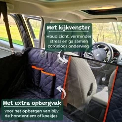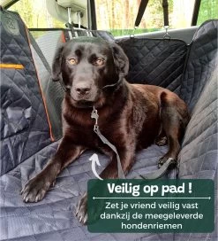 ✔ 2 autoriemen voor de hond, zodat deze veilig vastgezet kan worden.