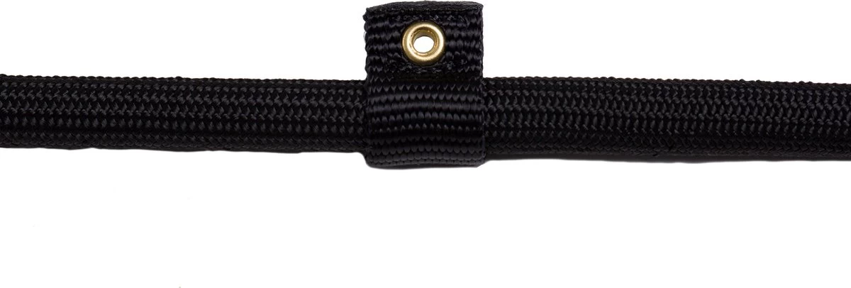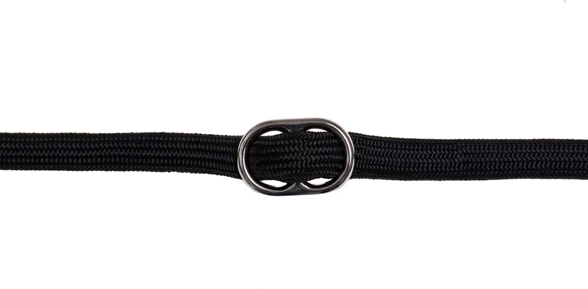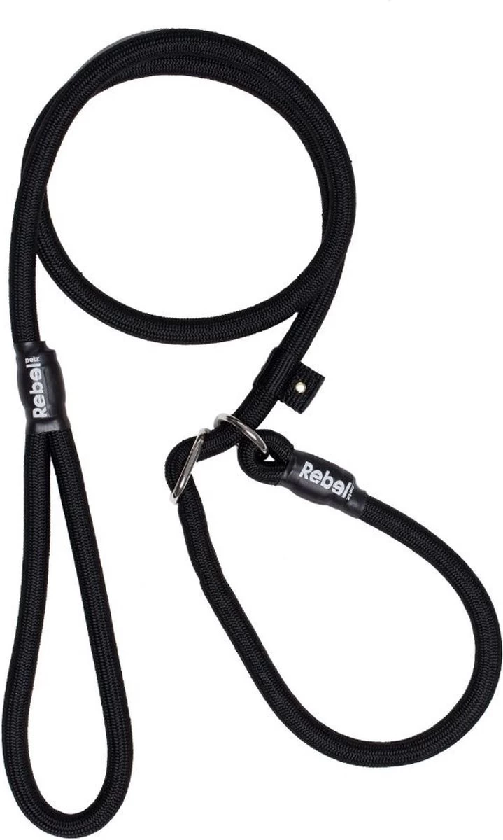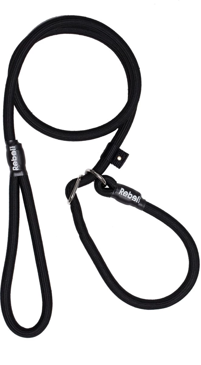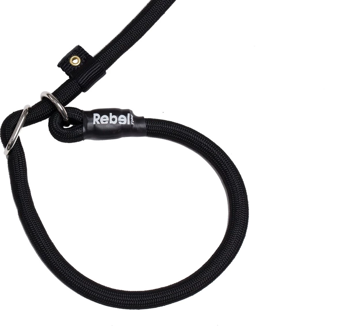 De honden trainingslijn van Rebel Petz is een moxon-touwlijn, wat betekent dat deze lijn uit één stuk is gemaakt. Daardoor is er bij deze trainingslijn geen aparte halsband nodig. Met het verstelbare schuifstuk kan de halsband worden aangepast naar de gewenste halsomvang van jouw hond. Als de lijn is afgelijnd en jouw hond geen halsband draagt, bestaat er daarom ook geen gevaar om achter takken te blijven hangen.