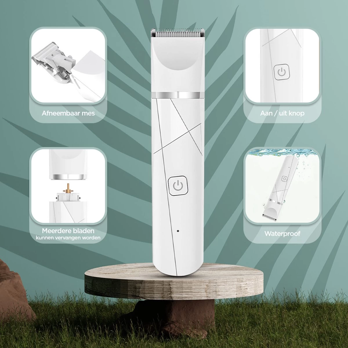 - Waterproof ontwerp – De hondentondeuse kan na gebruik gewoon onder de kraan afgespoeld worden! Hierdoor zijn de haren eenvoudig en snel weer te verwijderen en kan de tondeuse netjes opgeborgen worden.