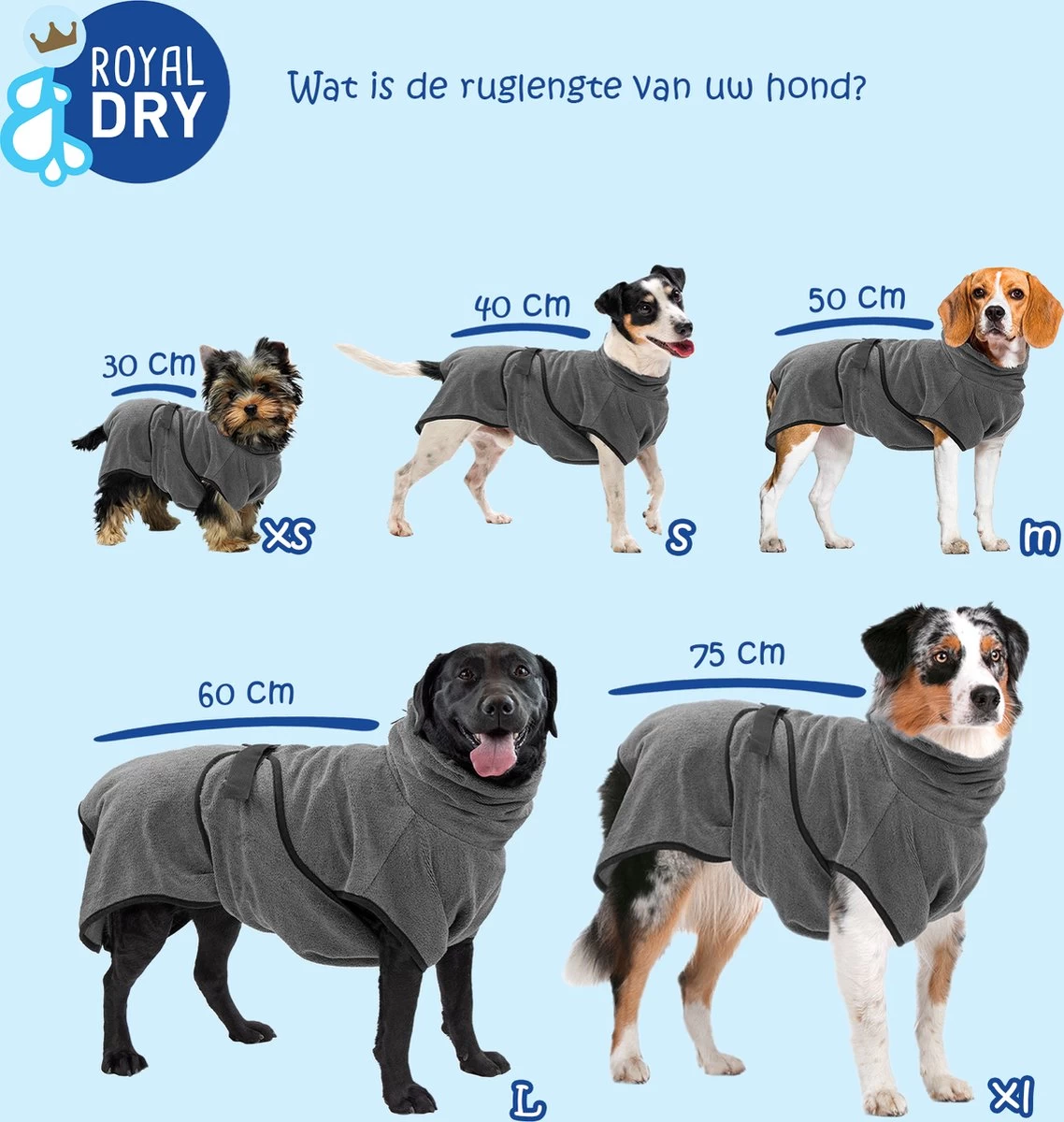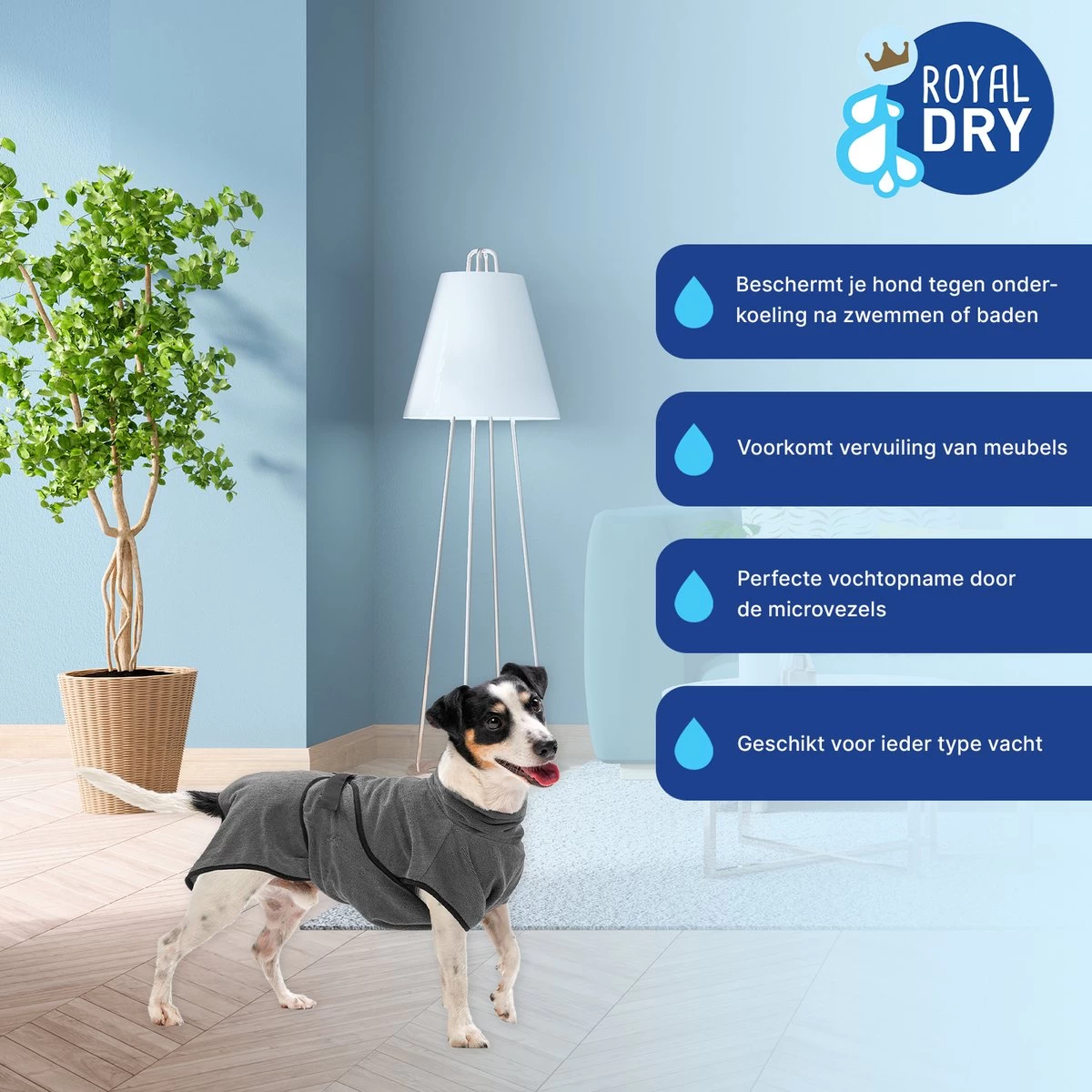 Extreem duurzame en superzachte unieke absorberende microvezelbadjas voor honden geproduceerd door Royal Dry.