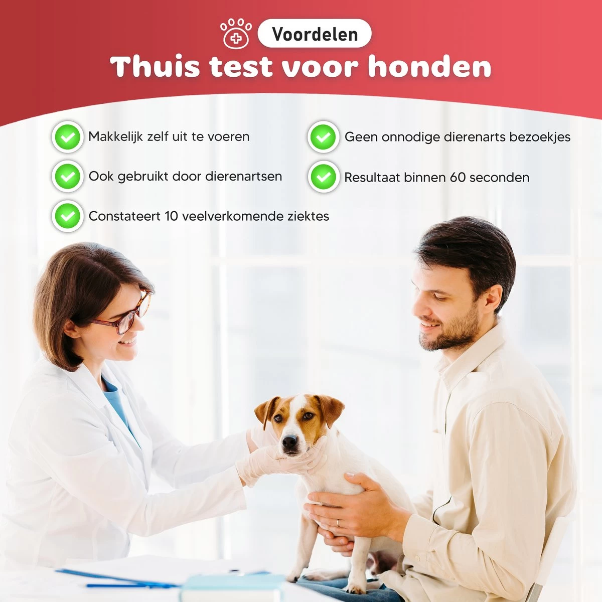 Deze handige thuistest is geschikt voor honden van alle leeftijden en rassen. In het bijzonder is deze test aan te raden aan baasjes die de gezondheid van hun hond regelmatig willen controleren en in een vroegtijdig stadium eventuele gezondheidsrisico’s willen vast stellen voordat ze zouden kunnen verergeren. Hierdoor kan jij als baasje tijdig actie ondernemen voordat dit leidt tot ernstige (blijvende) gezondheidsschade.