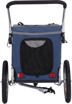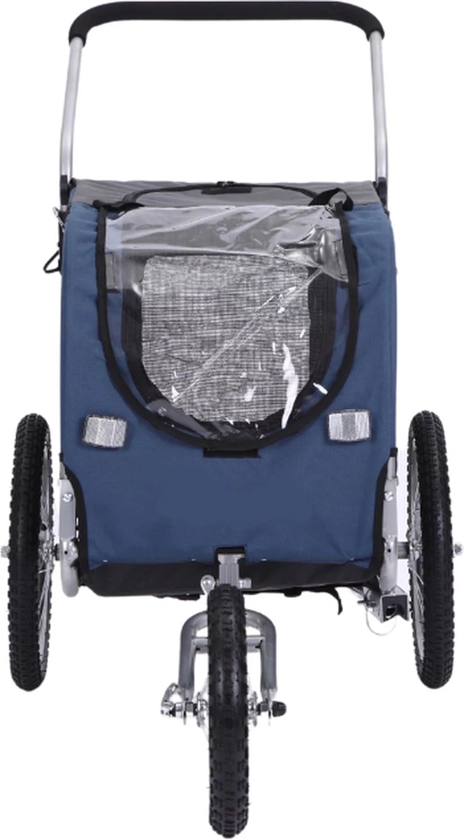 Deze fietskar heeft bovendien een joggerfunctie. Wordt meegeleverd met extra loopwiel en duwstang. De duwstang is bovendien te verstellen. .