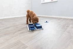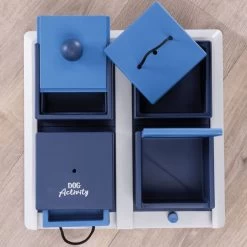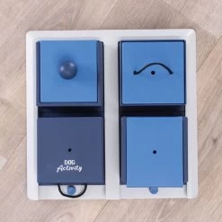 Doordat het spel op rubberen voetjes staat, slipt het spel niet weg als je lieverd ermee speelt. Daarnaast zit er ook een boekje bij met meer tips en trucs zodat jij het spel steeds weer uitdagend kan houden voor je hond.