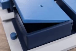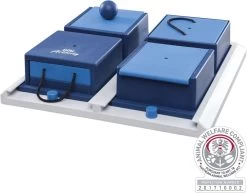 Trixie Dog Activity Poker Box 1Verstop brokjes of snacks in de vier rode bakjes. De hond zal deze ruiken, maar zal verschillende technieken moeten toepassen om bij de brokjes of snacks te komen. De vier rode bakjes kunnen namelijk ieder op een andere manier geopend worden.