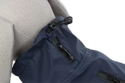 Deze hondenjas is zowel wind als waterdicht. Heeft een lekkere hoge kraag met trekkoord zodat hij ook warm is. De jas heeft ook 2 waterdichte ritssluitingen voor het aanlijnen aan de halsband respectievelijk tuig. De jas is gemaakt van polyurethaan/polyester en heeft een onderhoudsvriendelijke voering. De jas heeft buikriem met gesp die traploos verstelbaar is en verstelbare beenlussen voor de achterpoten voor een optimale pasvorm. Er staan ook reflecterende elementen op zodat uw hond beter opvalt in het donker.